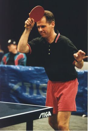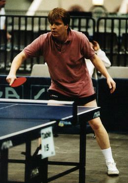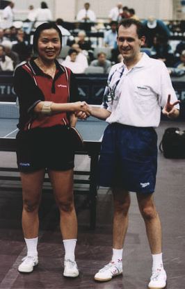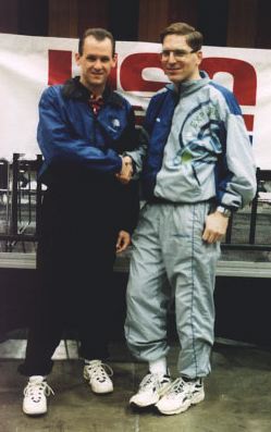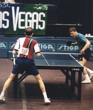 Marty Reisman and Terry Canup at the hardbat meeting: