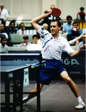 Marty Reisman and Terry Canup at the hardbat meeting: